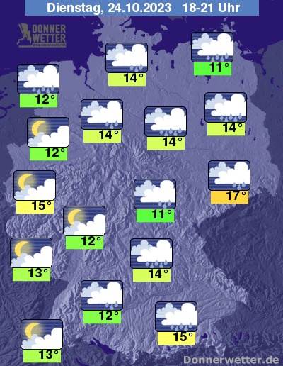 Heute Abend lockert es über dem Westen des Landes oft etwas auf und es bleibt verbreitet trocken. Im übrigen Land ziehen dagegen weiterhin dichte Wolken durch und es fällt zeitweise Regen. Die Temperatur liegt bei 11 Grad in Stralsund und 17 Grad in Dresden.