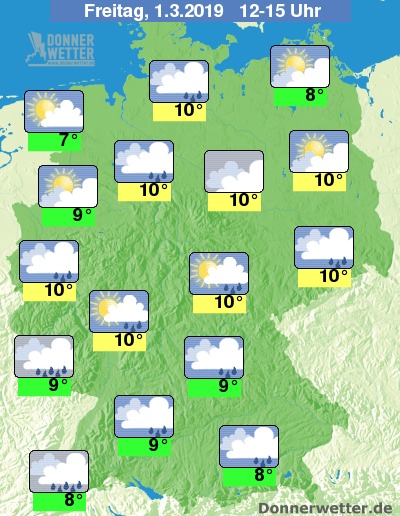 Am Nachmittag regnet es vor allem in der Mitte und im Süden des Landes noch verbreiteter und im Südwesten teilweise auch intensiver. Im Norden gibt es längere freundliche und trockene Abschnitte.