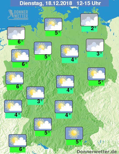 Die Temperaturen bewegen sich zwischen 2 Grad im Nordosten und 6 Grad am Rhein und an der Ems.