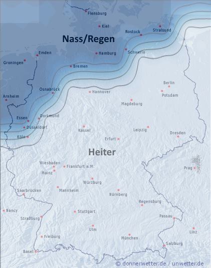 In den übrigen Landesteilen bleibt es bis zuletzt sonnig oder nur locker bewölkt und trocken.