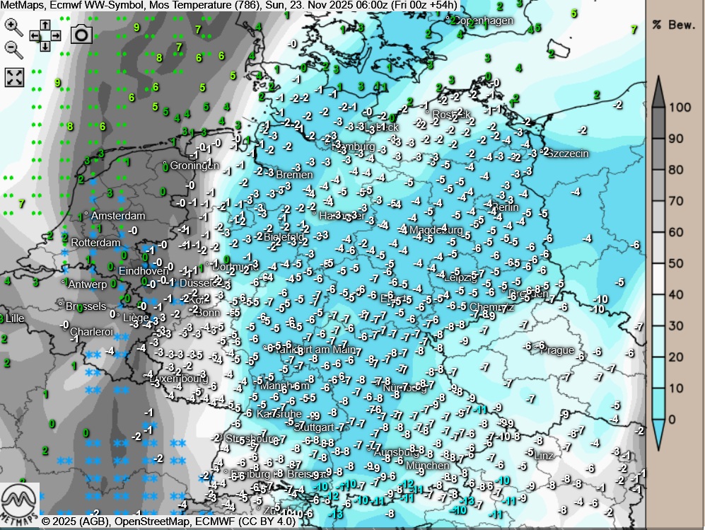 Höchstwerte am Sonntag um 1 bis 4 Grad.