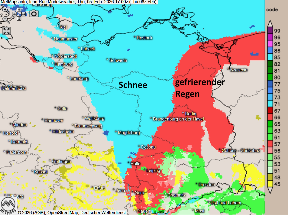 Auch in den nächsten Stunden bleibt die Witterung in den nördlichen und östlichen Landesteilen winterlich: Vor allem im Osten besteht dabei hohe Glättegefahr durch gefrierenden Regen. Im weiteren Tagesverlauf entspannt sich die Lage dann mit nachlassenden Niederschlägen steigenden Temperaturen. Im Norden und Nordosten kann in den nächsten Stunden noch etwas Schnee fallen.