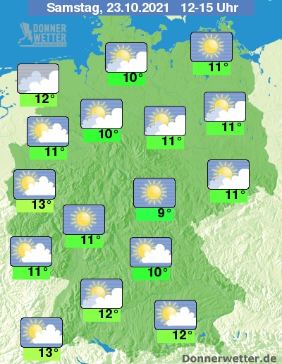 Heute Abend zeigt sich der Himmel meist gering bis locker bewölkt. Vom Niederrhein bis ins Emsland ist es aber auch gebietsweise stark bewölkt, dazu bleibt es trocken. Die Temperatur liegt bei 9 Grad in Erfurt und bis 14 Grad in Freiburg.