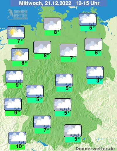 Heute Nachmittag bleibt es weitestgehend wolkenverhangen und die Sonne kommt nur selten, am ehesten im Nordwesten zum Vorschein. Im Norden ist es größtenteils trocken, sonst fällt zeitweise Regen bei 3 Grad in Chemnitz und 10 Grad in Freiburg.