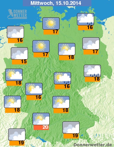 Der morgige Mittwoch bringt vor allem vom Nordosten, über den Osten bis in den Südosten Deutschlands noch verbreitet dichte Wolken und zeitweiligen Regen, sonst ist es aber auch oft heiter oder locker bewölkt. Von Südwesten her nimmt die Bewölkung am Nachmittag jedoch kontinuierlich zu und gegen Abend zieht hier Regen auf, der im Laufe des Abends noch bis zur einer Linie vom Rheinland bis zum Allgäu zieht. Die Temperatur steigt auf etwa 15 Grad direkt an der See und bis 20 Grad in Schwaben.