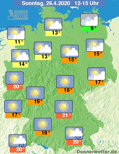 Heute Nachmittag ist es überwiegend heiter bis sonnig, dagegen halten sich über dem Norden und am Alpenrand oft auch dichte Wolken. An den Alpen sind dazu einzelne Schauer und Gewitter möglich, im übrigen Bundesgebiet bleibt es jedoch trocken. Die Temperatur steigt auf kühle 9 Grad in Stralsund und bis 21 Grad in Nürnberg.
