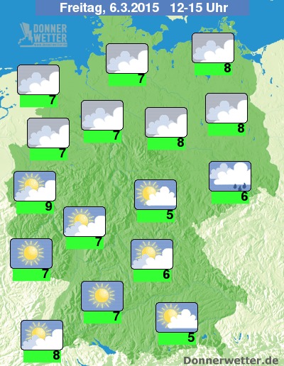 Der Nachmittag und frühe Abend des heutigen Freitags zeigt sich vor allem in der Südhälfte Deutschlands häufig freundlich. Die anfänglich noch dichte Wolkendecke in der Nordhälfte kann im Tagesverlauf aber auch immer wieder mal auflockern. Bedeckt zeigt sich dagegen die Osthälfte des Landes.