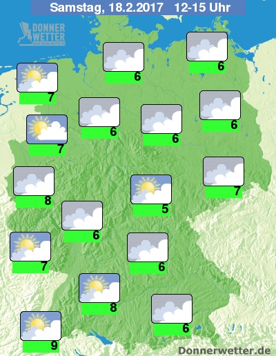 Heute Nachmittag ist es über vielen Landesteilen stark bewölkt, dabei jedoch trocken. Die größten Chancen für Auflockerungen gibt es in den westlichen Landesteilen. Die Temperatur liegt bei 5 Grad im Thüringer Becken und bis 9 Grad im Breisgau.