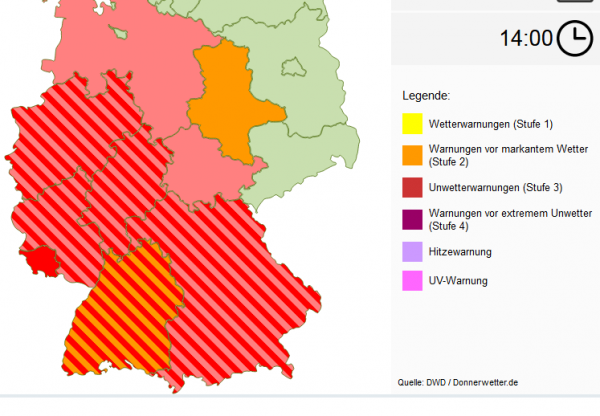 Achtung in Deutschland haben wir eine Sturmlage. Die Karte von 14 Uhr sehen Sie unten. Besonders die Mittelgebirge und Südund Westdeutschland sind betroffen, besonders auch NRW. Details unter www.unwetter.de