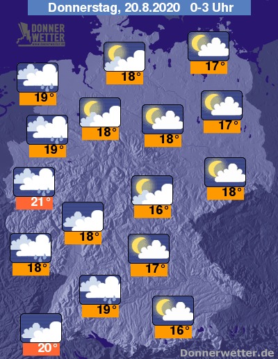 In der Nacht auf Donnerstag breiten sich die dichten Wolken weiter ostwärts aus. Bis zum frühen Morgen halten sich dann nur noch entlang der Oder lockere Wolkenfelder. Mit Schauern muss in den nächsten Stunden vor allem entlang des Rheins gerechnet werden, sonst bleibt es meist trocken.
