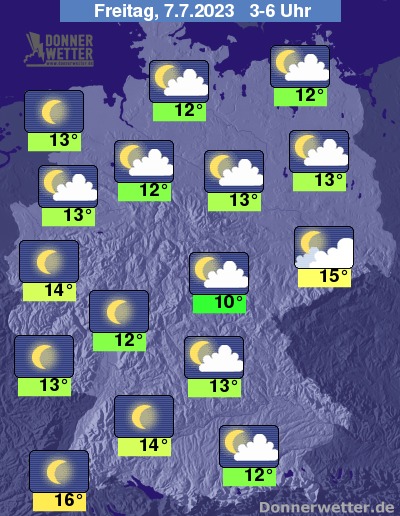 In der bevorstehenden Nacht zeigt sich der Himmel über dem Land verbreitet nur locker bewölkt oder sternenklar. Vor allem im Südosten des Landes und über Sachsen sind auch mal einige Wolken möglich, dazu bleibt es aber trocken. Die Temperatur sinkt auf 16 Grad in Freiburg und bis 10 Grad in Jena.