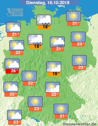Die Höchsttemperaturen liegen allgemein zwischen 20 und 26 Grad, wobei die höchsten Werte wohl im Rheinland erreicht werden. Unter den dichteren Wolken bleibt es mit Werten von 18 bis 20 Grad etwas kühler.