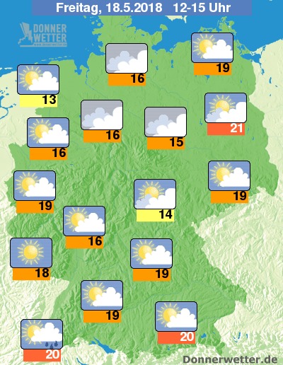 Trotz meist strahlendem Sonnenscheins ziehen am Nachmittag und Abend dann jedoch vor allem entlang der südlichen Mittelgebirge vereinzelt auch Schauer auf, in der Osthälfte sind lokal auch kurze Gewitter möglich.