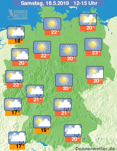 Heute Nachmittag ist es häufig heiter bis sonnig und trocken. Im Süden, Westen, Nordwesten und Nordosten bilden sich jedoch schon vielerorts Quellwolken und dazu gebietsweise Schauer und örtliche Gewitter, sonst bleibt es hingegen weitgehend trocken. Die Temperatur steigt auf 17 Grad am Pfälzer Wald und bis 23 Grad in Berlin.