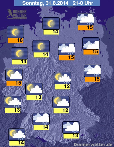 Am heutigen Abend dürfen sich die Voralpenländler noch auf teils anhaltenden Regen gefasst machen, aber auch sonst ist es mehrheitlich wechselhaft und es können sich weitere Schauer bilden. Freundlicher und häufig auch sternenklar wird es dagegen in einem breiten Streifen von der nördlichen Eifel, über NRW, Niedersachsen bis nach Schleswig-Holstein. Die Abendtemperatur liegt bei milden 16 Grad in Ostfriesland und etwa 12 Grad am Thüringer Schiefergebirge.