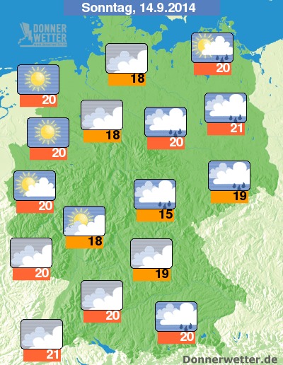 Heute zeigt sich das Wetter in der Osthälfte des Landes meist unbeständig, dabei entwickeln sich immer wieder Schauer, im Osten und Nordosten sind örtlich auch Gewitter möglich. Weiter nach Westen hin bleibt es bei aufgelockerter oder auch geringer Bewölkung weitgehend trocken. Die Temperatur steigt auf 15 Grad im Coburger Land und bis auf schwülwarme 21 Grad in Berlin.