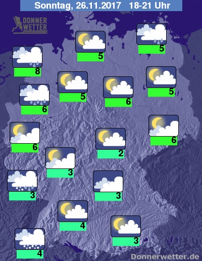 Heute Abend bleibt es in den westlichsten Landesteilen oft dicht bewölkt bei gebietsweise etwas Schnee, Schneregen oder Regen. Auch im Ostseeumfeld können dichte Wolken etwas Regen bringen. Sonst ist der Himmel überwiegend locker, hier und da auch stärker bewölkt, dazu jedoch trocken. Die Temperatur sinkt auf 8 bis 2 Grad.