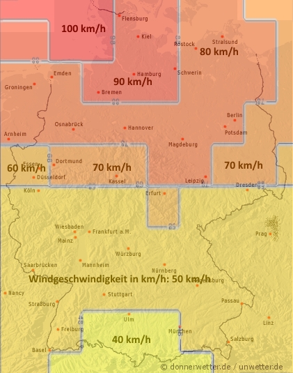 Am Mittag frischt der Wind entlang der Küsten bereits deutlich auf; hier können Windstärke um 8 bis 9 Beaufort erreicht werden. Auf dem Brocken sind schwere Sturmböen oder sogar orkanartige Böen möglich (11 Beaufort).