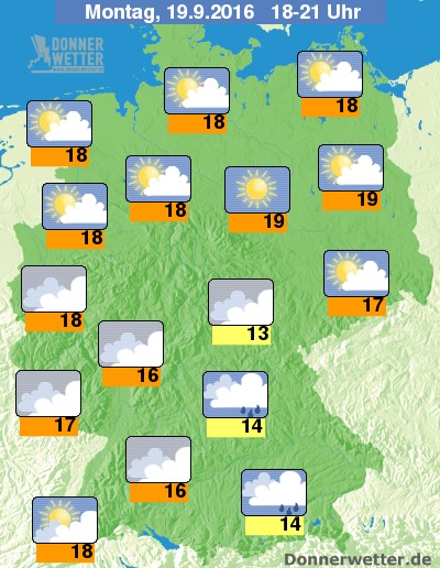 Im Norden noch Temperaturen knapp unter der 20-Grad-Marke.