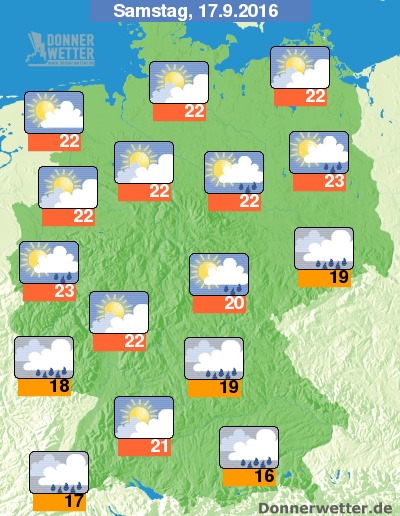 Heute ist es im Nordwesten Deutschlands leicht oder aufgelockert bewölkt und dazu auch trocken. Besonders im Süden und Osten, teils auch im Westen zieht starke Bewölkung durch und es können sich wiederholt Schauer bilden. In den übrigen Landesteilen ist es aufgelockert bis stark bewölkt und meist trocken. Die Temperatur steigt auf 16 Grad in München und bis 23 Grad in Berlin.