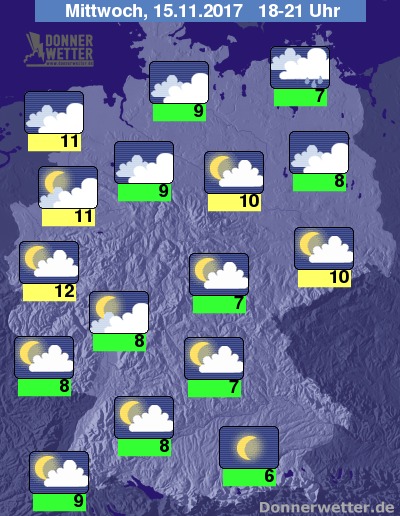 Heute Abend bleibt es im Norden stark bewölkt, dazu fällt im Ostseeumfeld zeitweise Regen während es sonst weitgehend trocken bleibt. Im Süden ist es meist gering bewölkt oder sternenklar, im übrigen Land locker bis wechselnd bewölkt, dazu bleibt es trocken. Die Temperatur liegt bei 6 bis 12 Grad.
