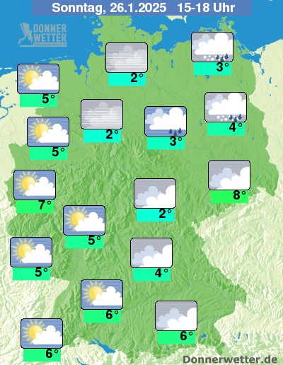 Die Temperaturen erreichen Höchstwerte um 2 Grad an der Weser und 8 Grad in der Lausitz.