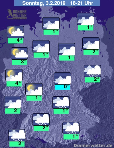 Heute Abend lockert der Himmel im Westen und Nordwesten hier und da etwas auf. Über der Südosthälfte fällt bei dichter Bewölkung hingegen zeitweise Schnee oder Schneeregen. Im übrigen Bundesgebiet ist es bei starker Bewölkung weitgehend trocken. Die Temperatur liegt bei 0 Grad im Vogtland und bis 4 Grad im nördlichen Emsland.