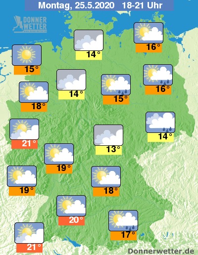 Am Abend zeigt sich der Himmel zunächst noch verbreitet wechselnd oder stark bewölkt, vor allem an den Küsten sowie in der Westhälfte kann es gebietsweise auch mal heiter sein. Im Osten und im Alpenvorland kann gebietsweise etwas Regen fallen, sonst bleibt es überwiegend trocken.
