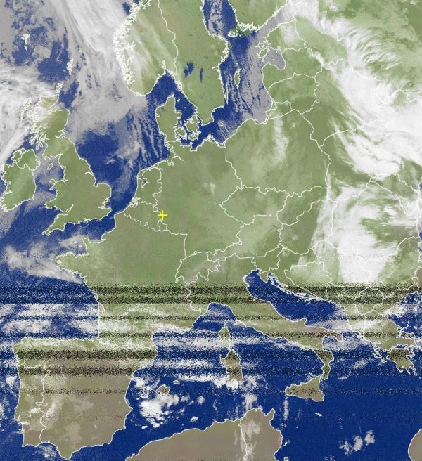 Auf dem aktuellen Satellitenfoto liegt vor allem der Osten Europas unter eine häufig geschlossenen Wolkendecke, hier fällt gebietsweise anhaltender und ergiebiger Regen. Tiefdruckeinfluss herrscht ebenfalls über der Iberischen Halbinsel, hier bilden sich gebietsweise Schauer und Gewitter.