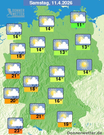 | Am Donnerstag teils heiter, teils mehr oder auch dichte Wolken, trocken, 10 bis 22 Grad. |