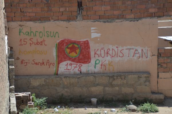 Abb.: Fahne der PKK im Südosten der Türkei an einer Hauswand - Widerstand gegen einen faschistischen Staat Türkei?