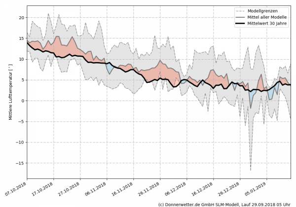 Der Osten hat den Vorteil, erst ab Ende des Monats Oktober rutschen sie unter den Durchschnittstemperaturenwert von 10 Grad C. Im Vergleich aus den Messungen der letzten Jahre zeigen sich gute Werte für die Sonnenstunden. Die Regentage halten sich bedeckt und es lässt sich auf einen schönen Oktober schließen.