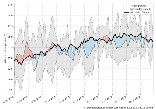 Unsere aktuellen Langfristprognosen für Lufttemperatur, Sonnenscheindauer und Niederschlagshöhe.