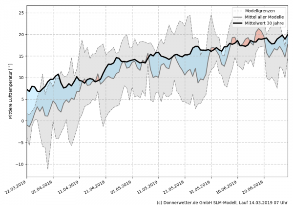 Unsere aktuellen Langfristprognosen für Lufttemperatur, Sonnenscheindauer und Niederschlagshöhe.