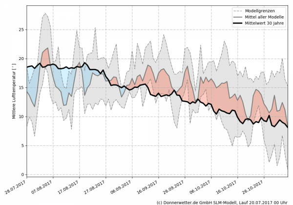 Viele freundliche aber auch feuchte Phasen, dazu Temperaturen meist deutlich über den langjährigen Mittelwerten - so berechnen unsere aktuellen Langfristprognosen zur Zeit den Wetterverlauf im September und Oktober. Eher kühl und mit wenigen Sonnenstunden kommt dagegen nach derzeitigem Stand der Zeitraum zwischen Ende Juli und Ende August daher - stimmen wir uns also schon mal auf den vermutlich goldenen Herbst ein!