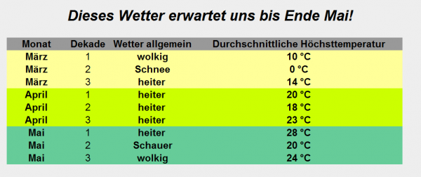 Unsere aktuelle Langfristprognose bis Ende Mai 2017!