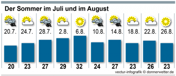 Sowohl der Juli als auch der August zeigen nach jetzigen Modellrechnungen eine leicht zu warme Tendenz.