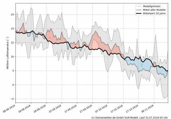 Ein Blick auf die Temperaturprognose der kommenden Wochen zeigt: Es bleibt auch weiterhin überdurchschnittlich warm. Zu trockene und zu nasse Phasen halten sich im Süden bis Ende September dabei meist die Waage. Ausgenommen die dritte Augustdekade ist zudem mit mehr Sonnenstunden als üblich zu rechnen.