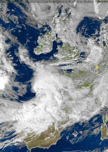 Teils kräftige, langanhaltende und ergiebige Niederschläge über Portugal, Spanien und Frankreich
