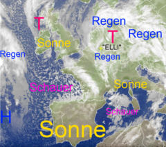 Tief 'ELLI' bringt viel Regen und starken Wind