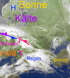 Luftmassengrenze über der Südhälfte