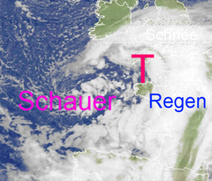 Wolkenwirbel bringt Schnee- und Schneeregenschauer