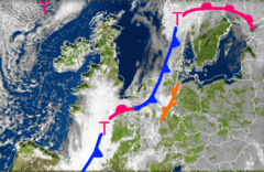 markante Luftmassengrenze mit Unwettergefahr