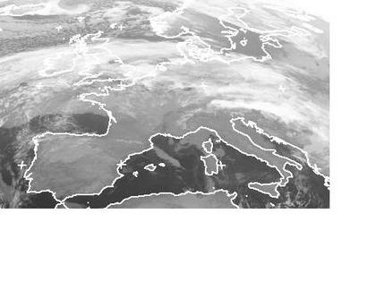 Eine Luftmassengrenze verläuft von Großbritannien über Deutschland und Polen bis zum Schwarzen Meer und trennt feuchte und kühle Luft in Norden von trockener und milder Luft im Süden. Dabei kommt es entlang dieser Grenze zu dichten Wolken und teils ergiebigen Niederschlägen. (Bildquelle: NERC Satellite Receiving Station, Dundee University, Scotland, http://www.sat.dundee.ac.uk/)