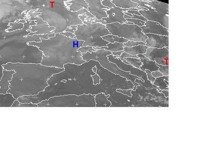 Von Großbritannien bis Südskandinavien und Norddeutschland, sowie in Südosteuropa bringen Tiefausläufer noch Schnee oder Regen, am Mittelmeer teils auch Gewitter. Sonst sorgt Hochdruckeinfluss für trockenes, meist aber trübes Winterwetter. (c) DWD/Eumetsat