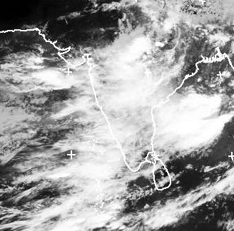 Fast der gesamte Indische Subkontinent liegt derzeit unter Wolken. Feuchte Luftmassen ziehen vom Indischen Ozean in Richtung Himalaya und stauen sich dort. Diese Luftströmung ruft den Monsun hervor, der einige Monate andauert und ergiebigen Regen nach Indien bringt.