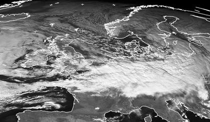 Über Nordfrankreich, Deutschland und Polen liegt Mittwoch Mittag dichte Bewölkung. Sie gehört zur Kaltfront von Sturmtief 'Noel' mit Zentrum über Südskandinavien. Auf der Nordsee zeigen sich durch die teils linienhaften Anordnung der Bewölkung die nordwestlich geprägten Strömungsverhältnisse. Auf dieser 'Rennbahn' folgt bereits morgen das neue Sturmtief 'Tilo' nach Mitteleuropa, dessen ersten Wolken schon westlich vor Großbritannien zu sehen sind. (Bildquelle: NERC Satellite Receiving Station, Dundee University, Scotland, http://www.sat.dundee.ac.uk/)