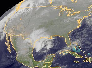 Während an der Westküste der USA Tiefausläufer für Wolken sorgen, ist es über dem Großteil der USA unter Hochdruckeinfluss nur gering bewölkt. Über Texas und dem westlichen Golf von Mexiko hat sich jedoch unterstützt durch das warme Meerwasser ein kräftiges Tief gebildet, das auch starken Regen bringt. Es zieht allmählich nach Nordosten.