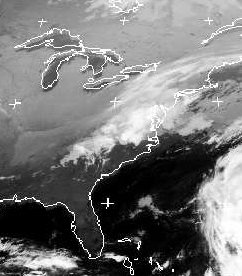 Über weiten Teilen des Ostens von Nordamerika finden sich kaum Wolken. Im Bereich der mittleren Appalachen bis an die Atlantiküste liegt aber die Bewölkung von einigen teils kräftigen Schauern oder auch Gewittern, die sich hier an der Grenze zwischen warmer Luft im Süden und Kaltluft im Norden gebildet haben. (Bildquelle: NERC Satellite Receiving Station, Dundee University, Scotland, http://www.sat.dundee.ac.uk/)