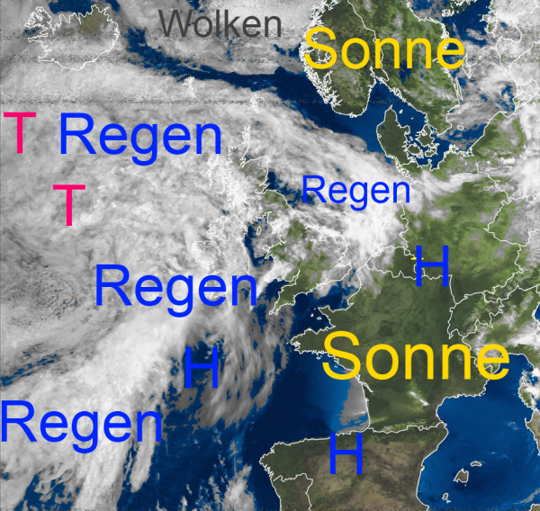 Vom Atlantik und den Britischen Inseln nähern sich kompaktere Wolken mit Regen im Gepäck. Daher sollte die andauernde Trockenperiode in großen Teilen unseres Landes zumindest mal gelindert werden. Ob diese Wolken mehr Regen bringen als nur der berühmte Tropfen auf den heißen Stein bleibt abzuwarten. Zumindest können regional über 20 Liter Niederschlag pro Quadratmeter fallen. Insbesondere ganz im Nordosten, als auch dort wo Frankreich nahe ist scheinen die Regenfälle und Schauer aber nicht allzu ergiebig auszufallen. Stellenweise bleibt es in diesen Bereichen sogar nahezu trocken.